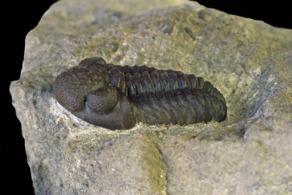 Juveniles Exemplar, nur wenige mm lang. Ahrdorf Formation, Flesten Member, Salmerweg bei Gees, Sammlung Norbert Höller